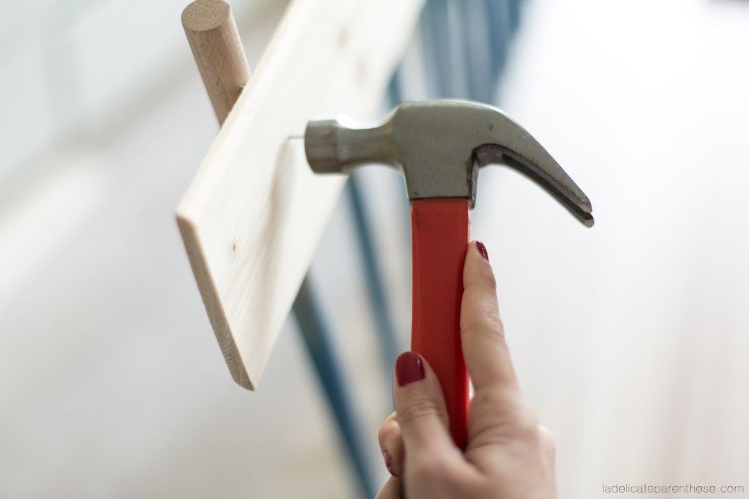 11. C’est le moment de poser la plinthe. Clouez-la en suivant les trous que vous avez pré-percés dans les tourillons.