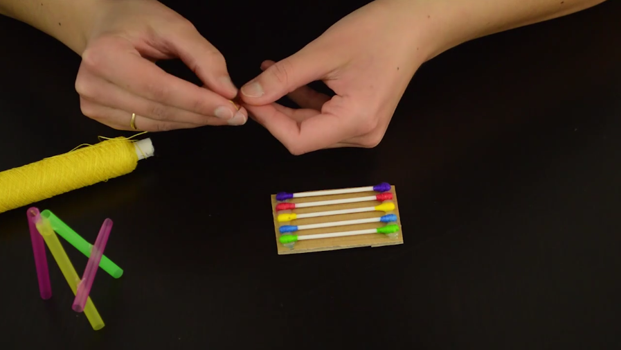 4/Et comme vous pouvez le voir sur la vidéo, il ne vous reste plus qu’à passer le fil en dessous du coton-tige, puis au-dessus, etc.