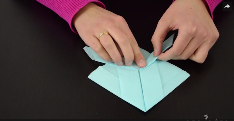 5/ Placez la pointe de la serviette vers vous et rabattez les deux autres pointes vers la première.