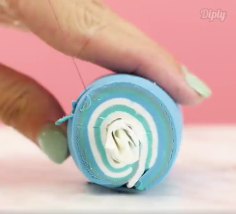 5) Maintenant, reprenez votre fil et coupez des tranches dans ce boudin de pâtes polymères.