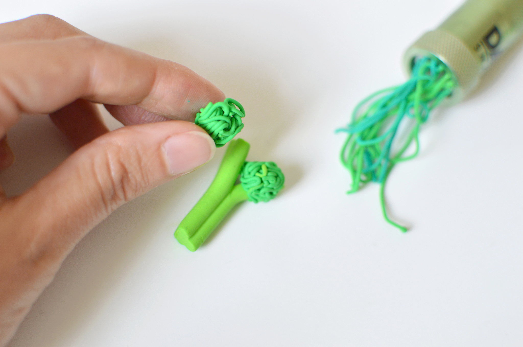 8. Poursuivez avec l’extrudeuse pour créer des filaments de pâte.