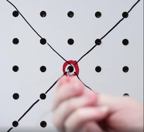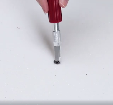 7) Prenez votre scalpel en main et réalisez un petit trou au niveau de chaque repère sur la mousse, en l’enfonçant légèrement sur chacun de ces points.