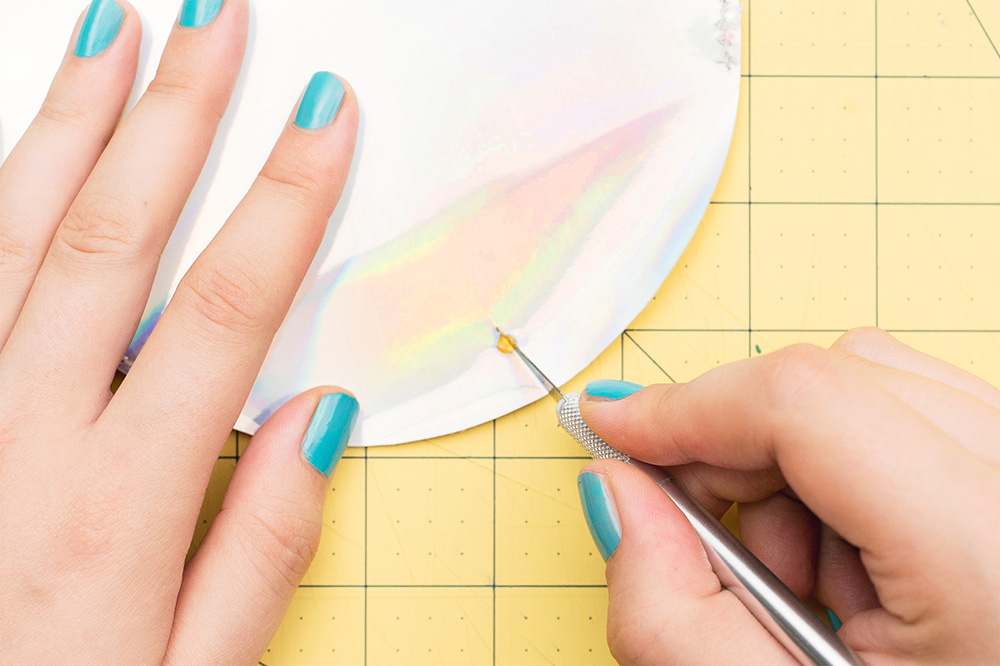 12. Avec un couteau, faites une encoche au niveau du trou supérieur pour aider le rivet à s’insérer.