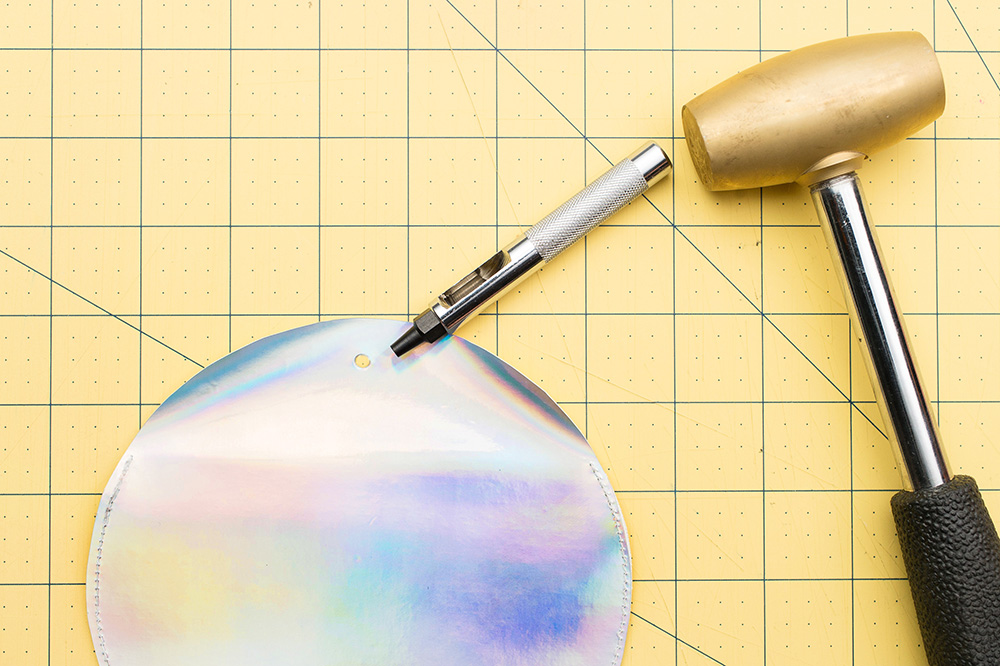11. Prenez un maillet et un poinçon et faites un trou au niveau de votre marque. Faites de même sur la partie qui réceptionnera le rivet.
