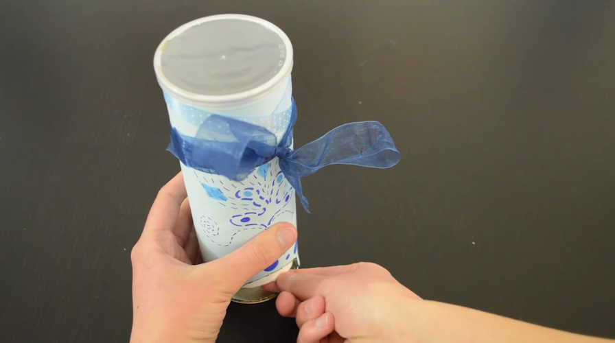 5/Une fois votre décoration terminée, vous pouvez également embellir le tout avec des rubans. Collez-les sur la boîte ou faites de jolis nœuds.