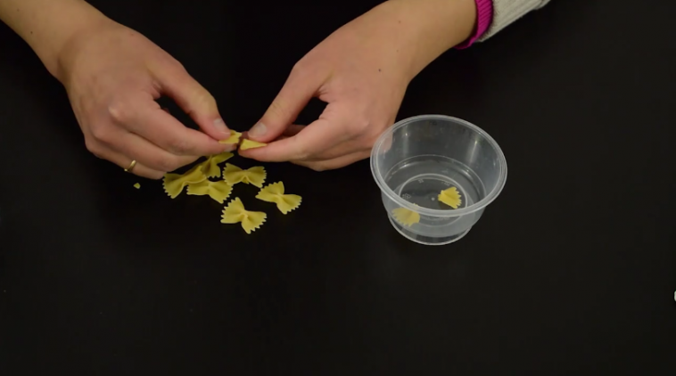 1/ Séparez une dizaine de farfalles en deux et placez-les dans un petit contenant en plastique.
