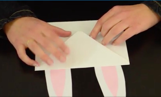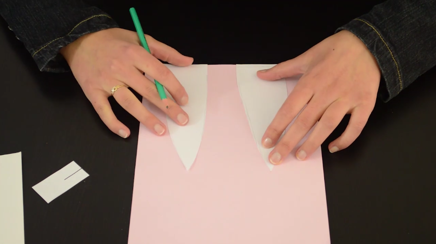 4/Sur la feuille rose, dessinez à nouveau des oreilles de lapin, mais plus petites de manière à ce qu’elles puissent être collées à l’intérieur des premières.