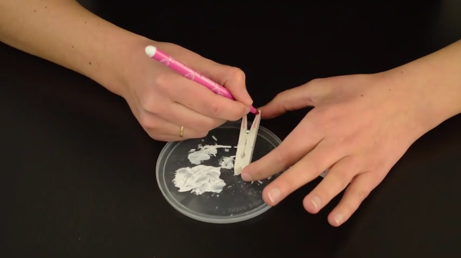 1/Peignez la pince à linge en blanc et n’hésitez pas à protéger votre plan de travail avec un morceau de carton ou même un couvercle en plastique.