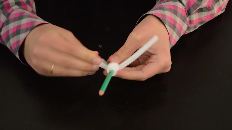 1/Enroulez le cure-pipe autour du crayon à papier jusqu’à avoir ce résultat :