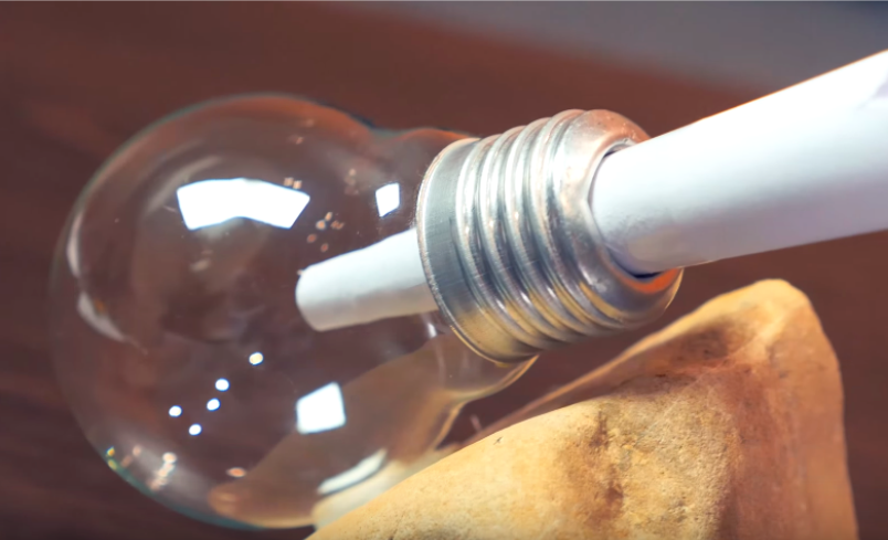 1) Videz l’ampoule avec votre pince en commençant par la partie noire puis en cassant et retirant ce qu’il y a à l’intérieur. L’utilisation de gants de protection et de lunettes de protection est conseillé pour cette étape afin d’éviter les éclats ou les échardes.