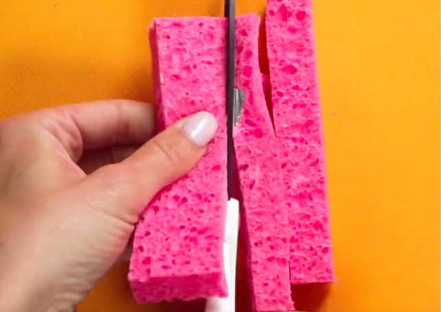 1) Coupez les lanières d’éponges avec vos ciseaux.