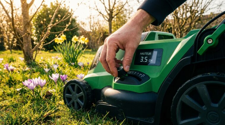 La clé du succès réside dans l’application stricte de la règle du tiers : il ne faut absolument jamais retirer plus d’un tiers de la hauteur du brin en une seule séance. Au printemps, le secret absolu consiste à relever le carter de la tondeuse pour maintenir une hauteur de coupe comprise entre cinq et six centimètres. Conserver cette hauteur généreuse, au moins pour les trois premières tontes de l’année, va stimuler l’enracinement profond et fortifier la plante sans l’épuiser.